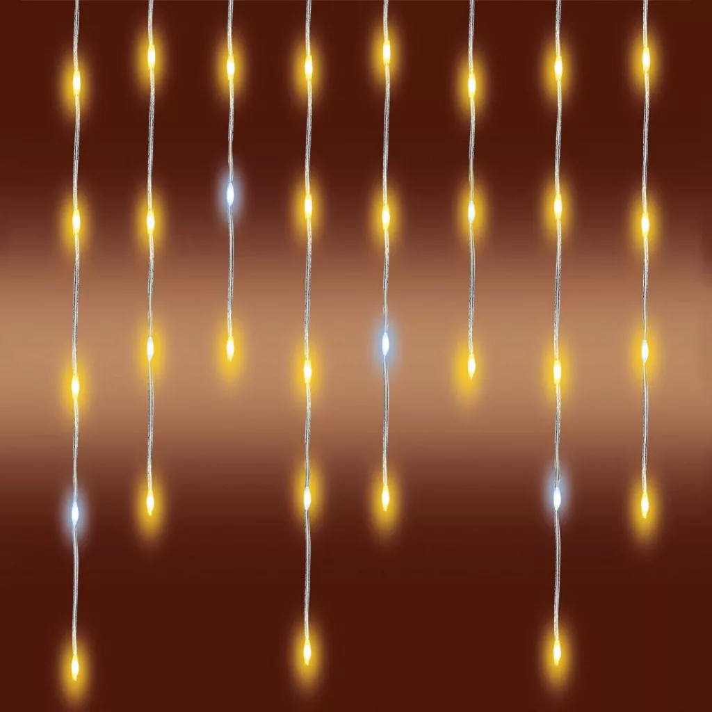 A fényfüggöny 300 db melegfehér DOT LED-del rendelkezik, amelyeket minden második füzérben 1-1 villogó hidegfehér LED egészít ki. Ez a kombináció izgalmas, szikrázó fényjátékot eredményez, amely úgy hat, mintha csillagfény szóródna szét az ablakon, a teraszon vagy akár a kerítés mentén. A fények lágy, mégis élettel teli ragyogása meghittséget sugároz, miközben feldobja a látványt.
