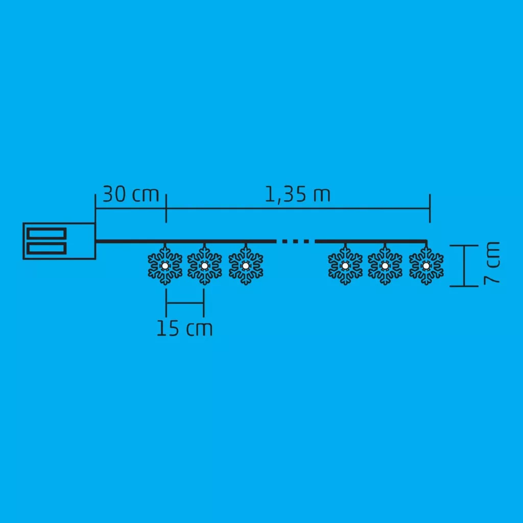 10 db, 7 cm magas fém hópehely díszek, ki/be kapcsolható