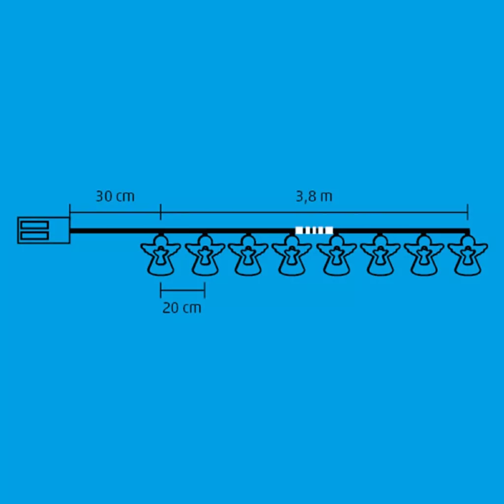 LED-es izzósor, fa angyal, 3,8m, 3V