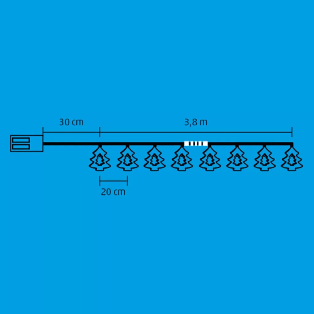 LED-es izzósor, fa fenyő, 3,8m, 3V