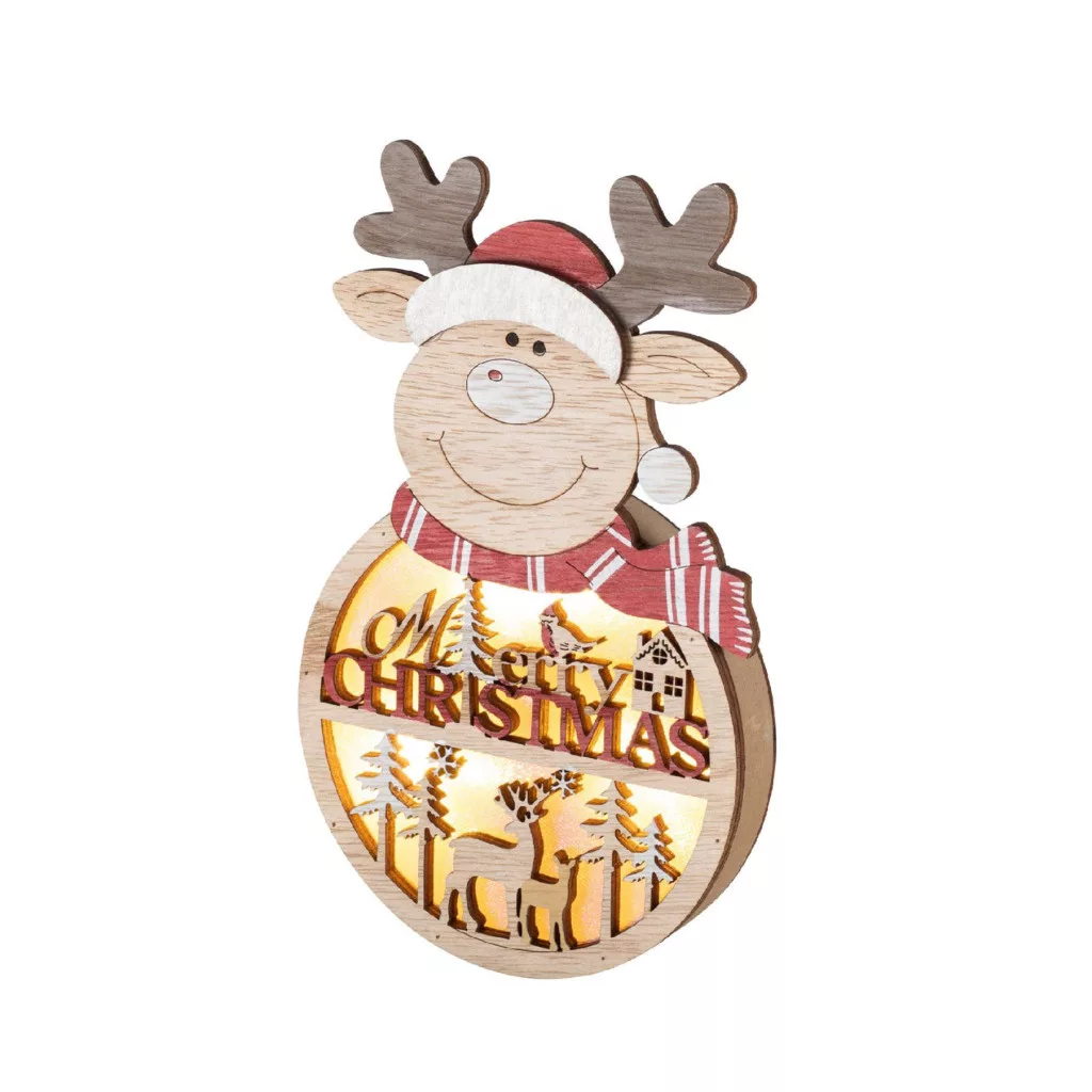 Home KLW 21 R ajtódísz, ablakdísz, fa, rénszarvas forma, 4 db LED, lézervágott, kapcsolható