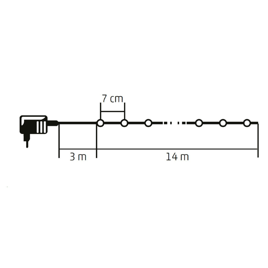 14 m füzérhossz (7 cm távolság a LED-ek között)