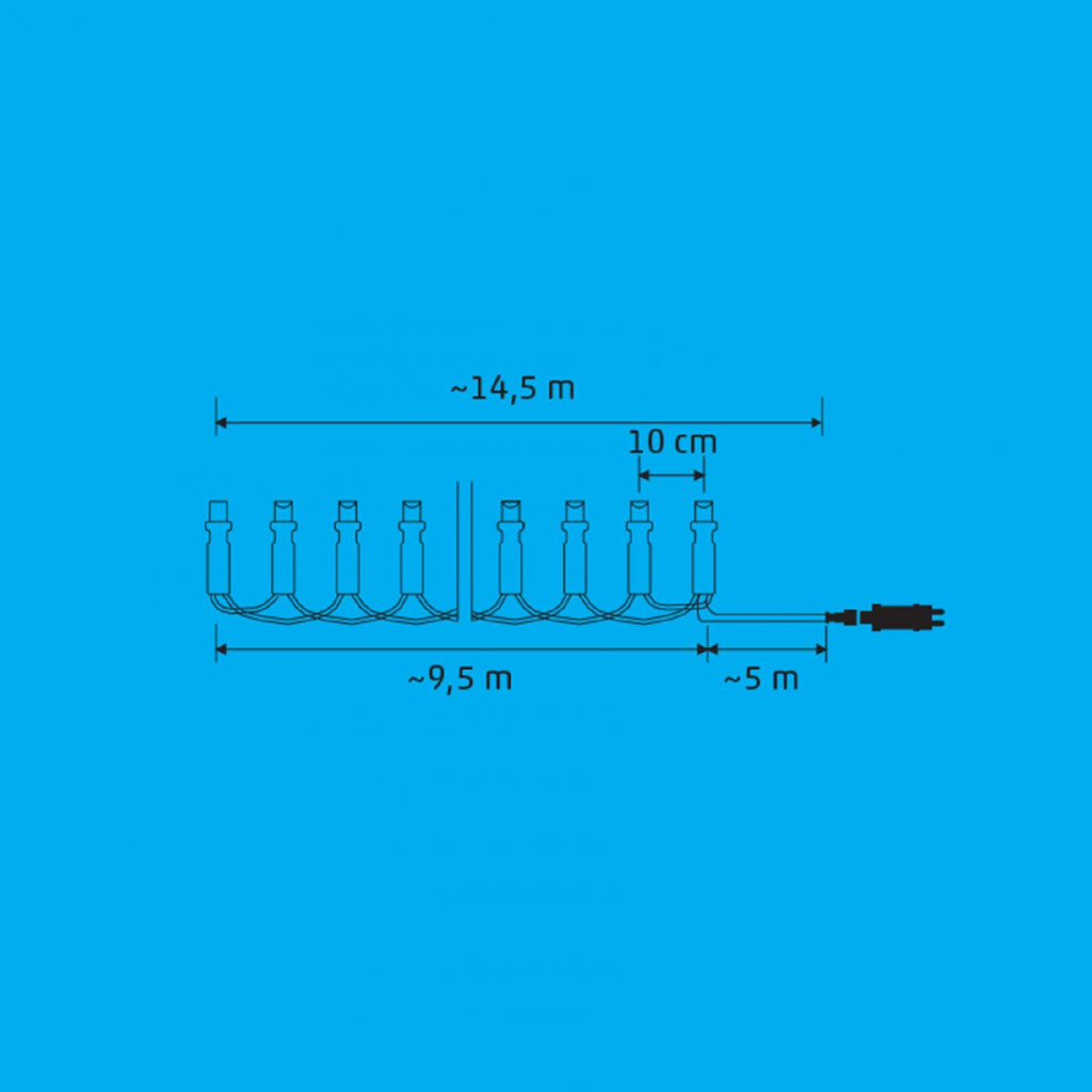 14,5 m (9,5 m füzérhossz + 5 m tápvezeték)