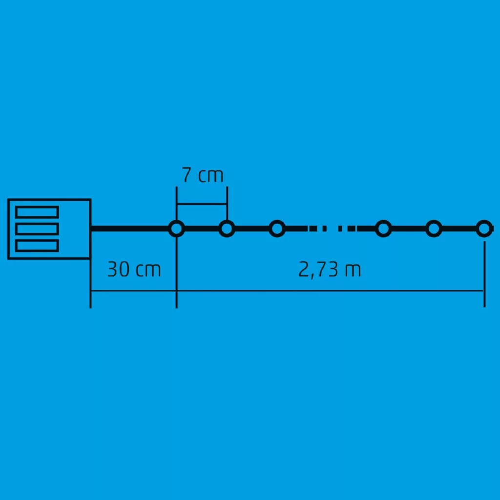 MLC 40B/M színes műanyag gömb dekoráció termékünk 40 db színes LED-del ragyogja be az ünnepeket. A fényfüzér beltéri használatra alkalmas, vezetéke átlátszó. Tápellátása: 3 db 1,5 V (AA) elem, nem tartozék