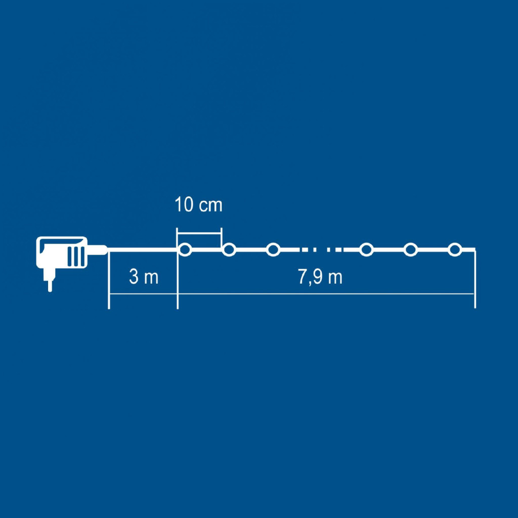 A 7,9 méter hosszú fényfüzér 80 darab hidegfehér, ragyogó micro LED-et tartalmaz, amelyek gyönyörű, állandó fényükkel feldobják bármelyik helyiséget vagy kertet. A vékony, diszkrét vezeték lehetővé teszi, hogy a fények szinte lebegjenek a térben, ezáltal minden dekorációhoz tökéletesen illeszkedik. A tápellátást biztosító IP44 kültéri hálózati adapter garantálja, hogy a fényfüzér ellenálljon az időjárás viszontagságainak, így bátran használhatja a szabadban is.