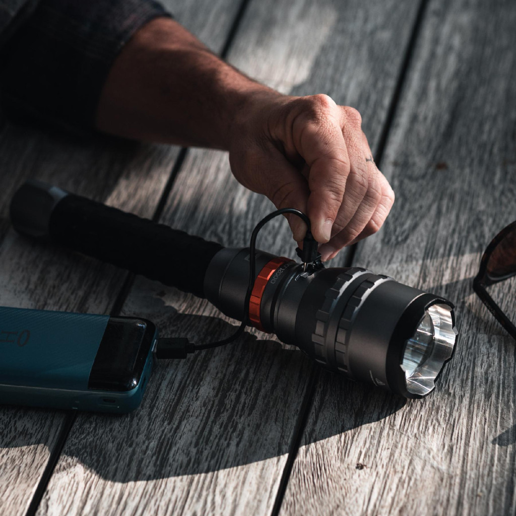 Az eloxált repülőgép-minőségű alumíniumból készült elemlámpa vízálló (IP67) és ütésálló, így az extrém körülmények között is megbízható társ. A csomag tartalmaz egy USB-C töltőkábelt és egy csuklópántot is, így a lámpa mindig kéznél lehet.