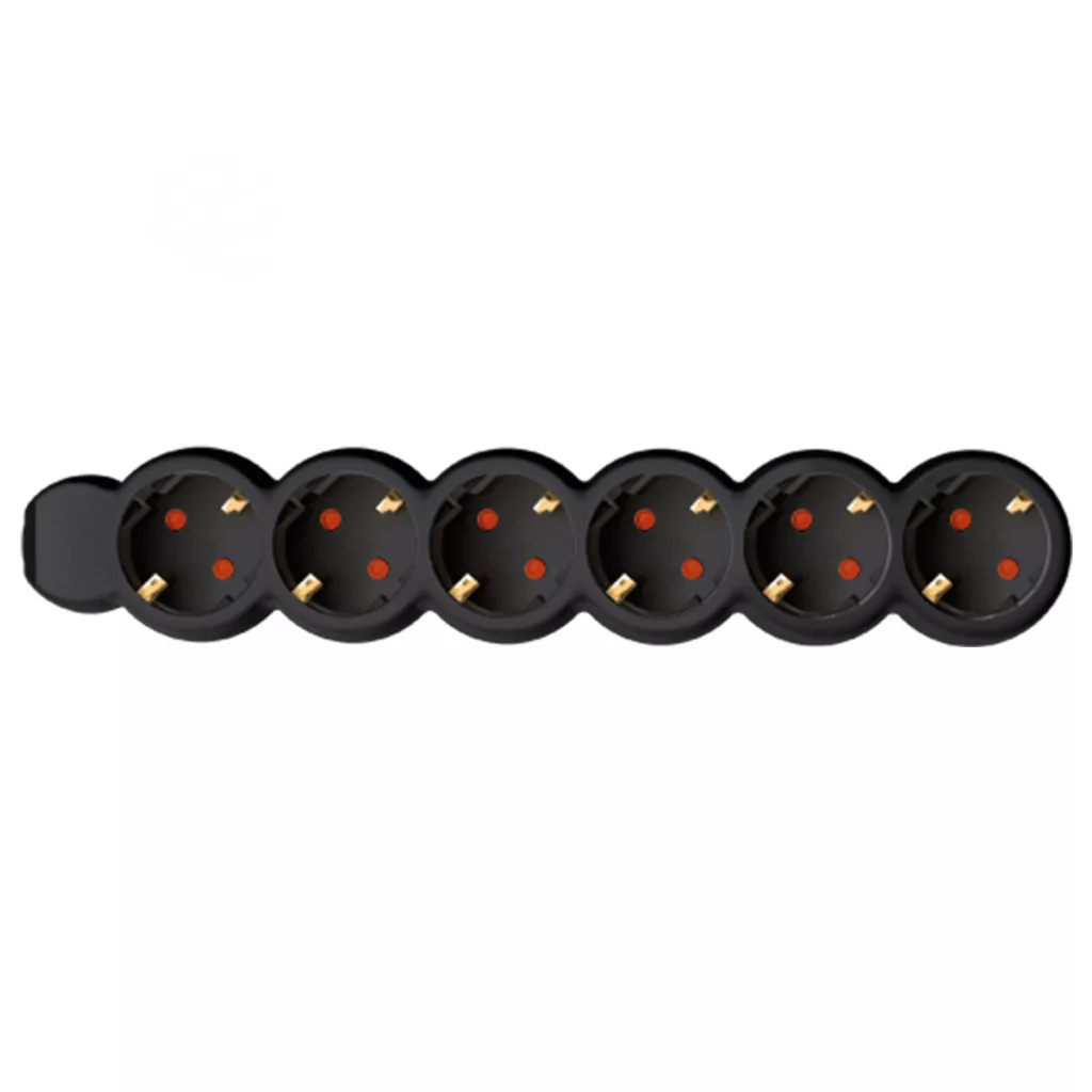 Az NV 6/BK Hálózati elosztó fekete színű, 6 db aljzattal és 1,5 m hosszú H05VV-F 3G1,0 mm2 kábellel felszerelt. A biztonságos használat érdekében gyermekvédelemmel ellátott. Maximum 3500 W-ig terhelhető.