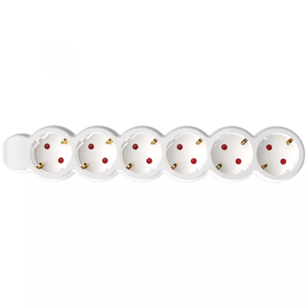 Az NV 6/WH Hálózati elosztó fehér színű, 6 db aljzattal és 1,5 m hosszú H05VV-F 3G1,0 mm2 kábellel felszerelt. A biztonságos használat érdekében gyermekvédelemmel ellátott. Maximum 3500 W-ig terhelhető.