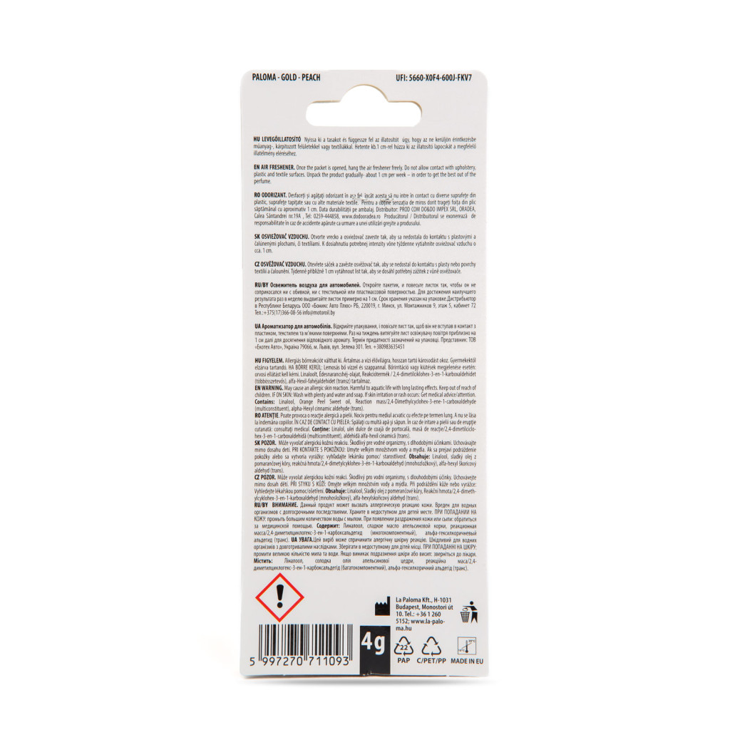Frissítse fel autója levegőjét Paloma Gold illatosítóval és élvezze a kellemes utazást minden kilométeren!