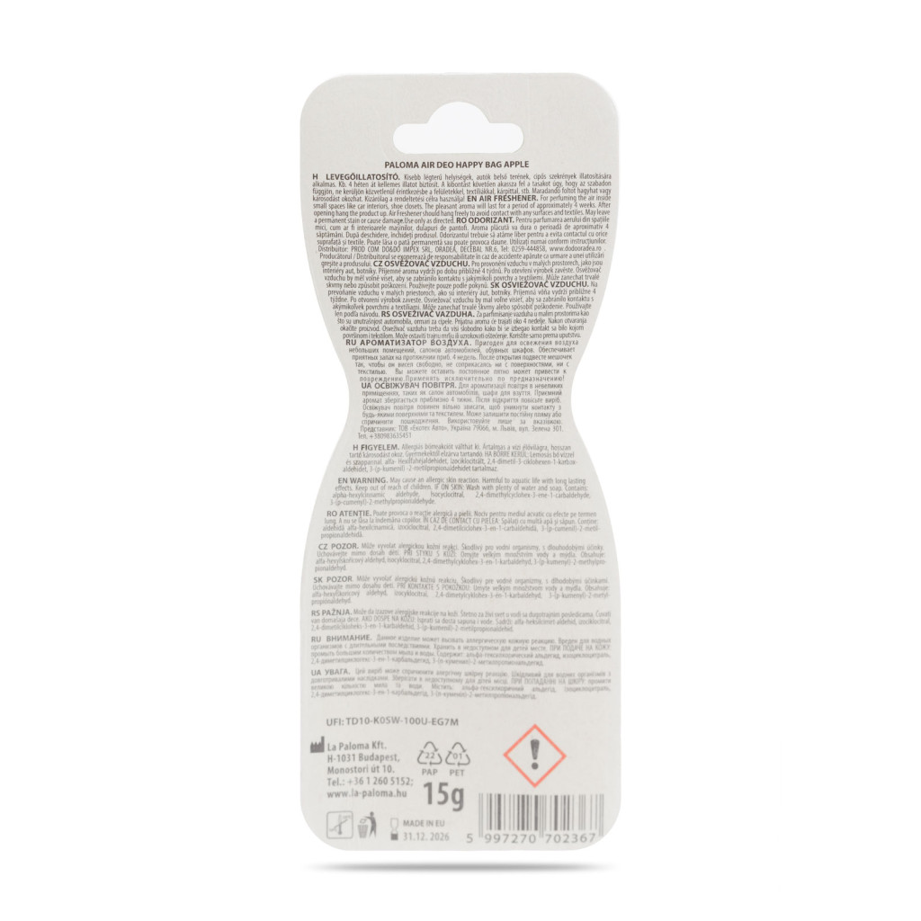 Ízléses kis tasak. A tasak belsejében illatgolyócskák találhatók, melyek több hétig kifejtik hatásukat. Használható lakásban, autóban.