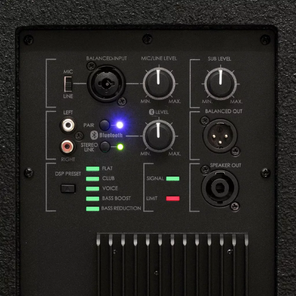A rendszer beépített Bluetooth TWS kapcsolattal rendelkezik, így két azonos hangdoboz vezeték nélkül párosítható sztereó módban, de a vezetékes csatlakoztatás sem marad el: MIC (XLR/6,3 mm), LINE (XLR/RCA/6,3 mm) bemenetek és LINE XLR, valamint Speakon kimenetek teszik lehetővé a rugalmas hanglánc-építést. Akár egyetlen rendszerként, akár többlépcsős hangtechnikai megoldás részeként is kiválóan működik.