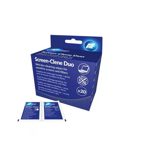 AF Tisztítókendő, képernyőhöz, 20 db nedves-száraz kendőpár, "Screen-Clene Duo"