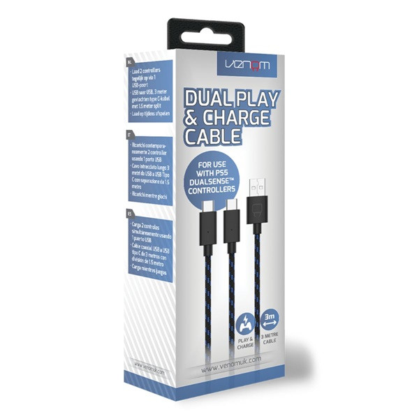 VENOM PS5 Kiegészítő Dupla Töltő kábel 3m Fekete, VS5002
