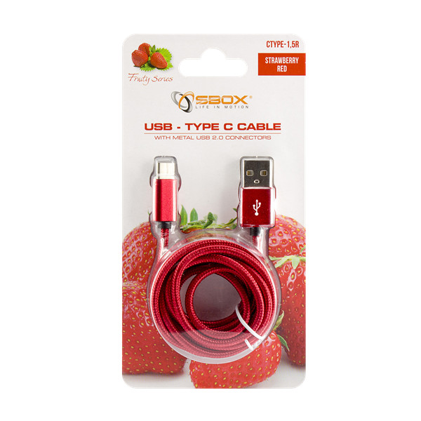 SBOX Kábel, CABLE USB Male -> TYPE-C Male 1.5 m Red