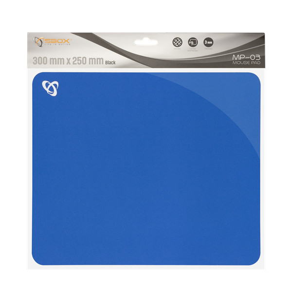 Introducing the SBOX MP-03 mouse pad, designed for precision. Measuring 300x250 mm with a 3 mm thickness, it's crafted from cellular rubber with an anti-skid surface. Available in Red, Blue, and Black.