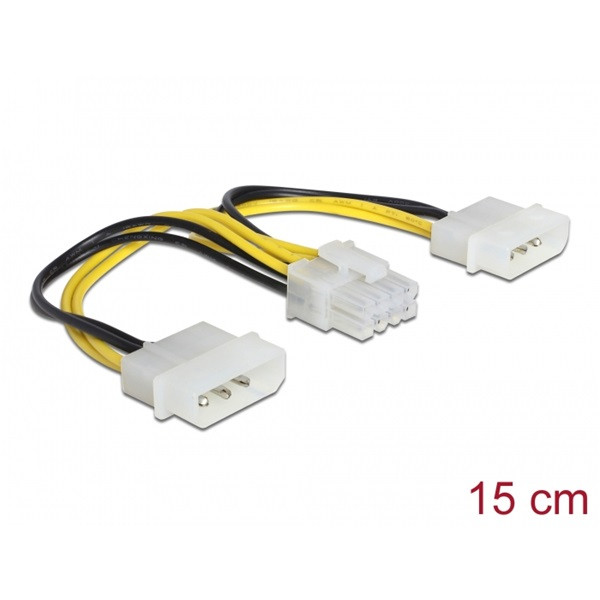 DELOCK Tápkábel 2x 4 pin Molex male > 8 pin EPS male 15cm