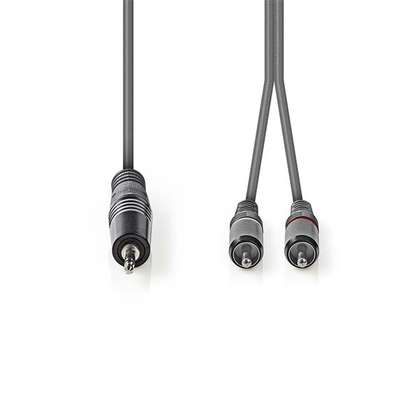 Nedis COTH22200GY15 félprofi audio kábel, 3,5mm sztero jack dugó - 2 x RCA dugó, 1.5m, rugalmas