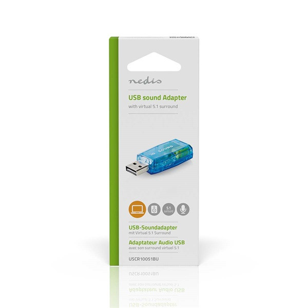Nedis USCR10051BU USB hangkártya, 3,5mm mikrofon és fejhallgató csatlakozás, virtuális 5.1 3D hangadapter