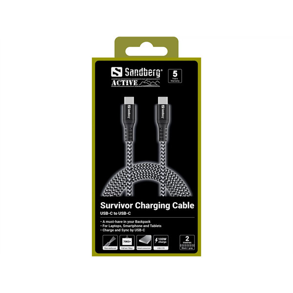 Sandberg Survivor Cable 2m töltőkábel, 100W,