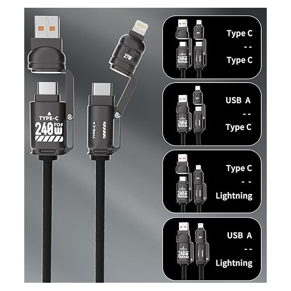 BLACKBIRD Adatkábel Extreme 4in1 USB-A/USB-C/Lightning 50-200cm, fekete