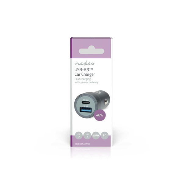 Nedis CCH1C1A48W szivargyújtós autós töltő, 48 W | 1,5 / 2,0 / 3,0 A, USB-A / USB-C, automatikus feszültségválasztás